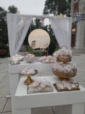 Γάμος – Αψίδα Στρόγγυλη – Χρυσές βάσεις